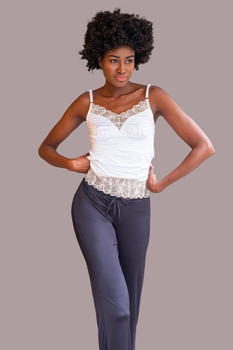 Our classic Zoe Pants PJ are the ultimate in comfort and elegance. Designed for relaxation, these versatile pants are a must-have for any wardrobe, offering both style and practicality.