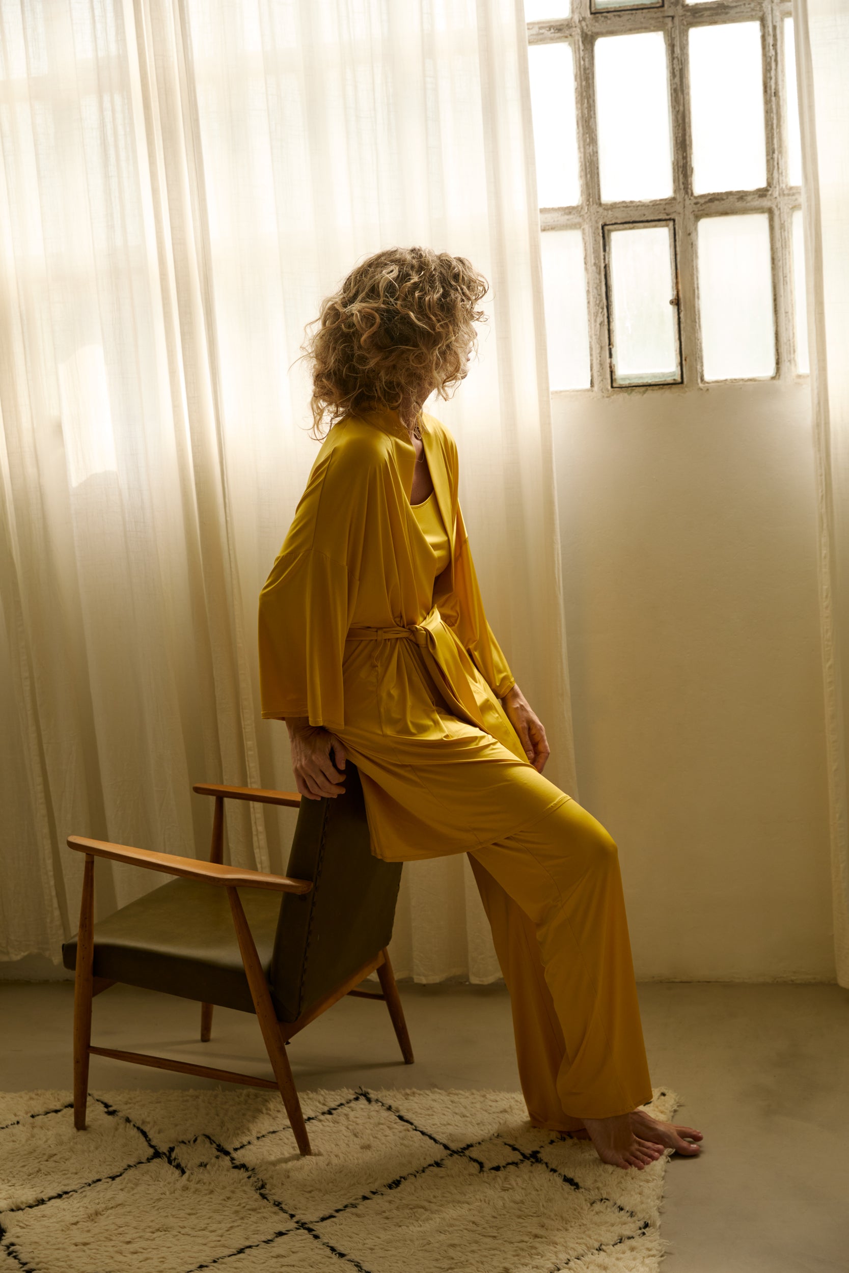 Smooth and luxurious, it creates a sensation of pure lightness and well-being.Easy wear, easy care: Machine wash at 30°C · Drip dry · Cool iron inside out.