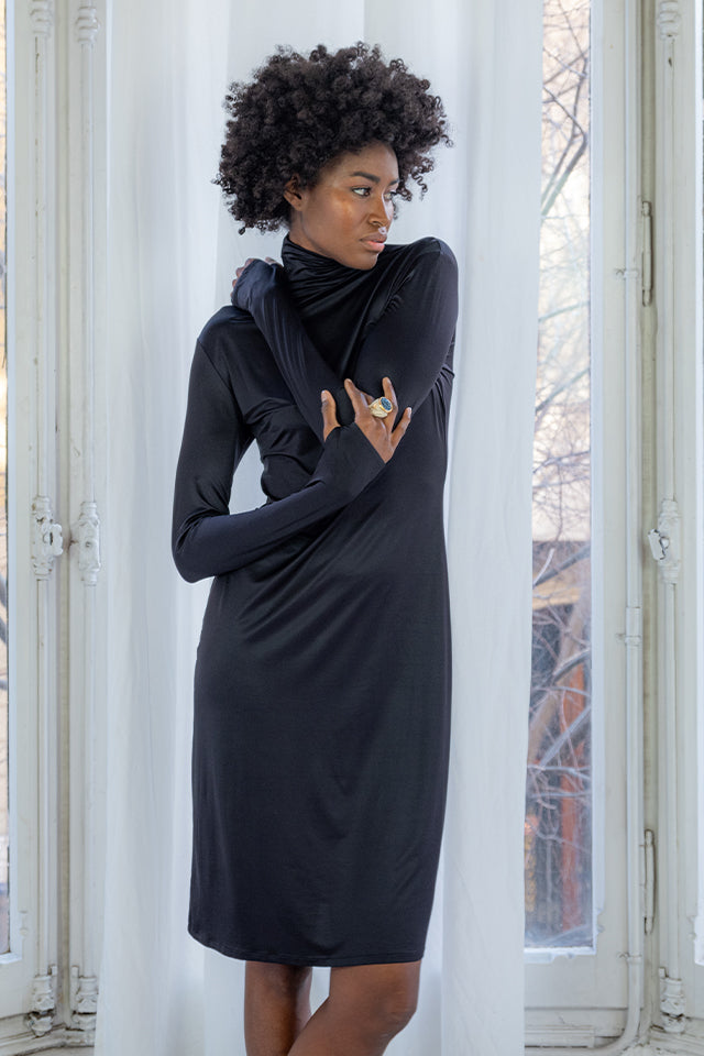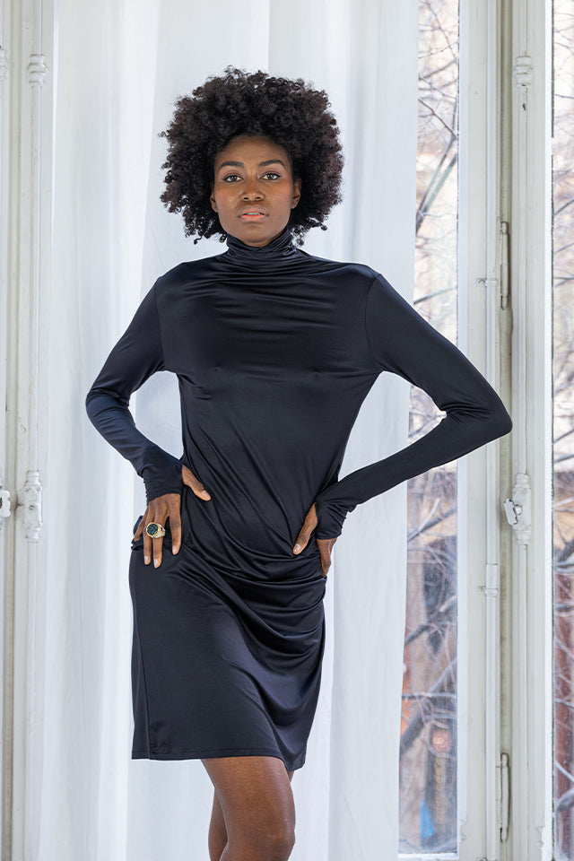 - Elegant Design: Features a turtleneck and long sleeves, offering a refined silhouette perfect for any setting.