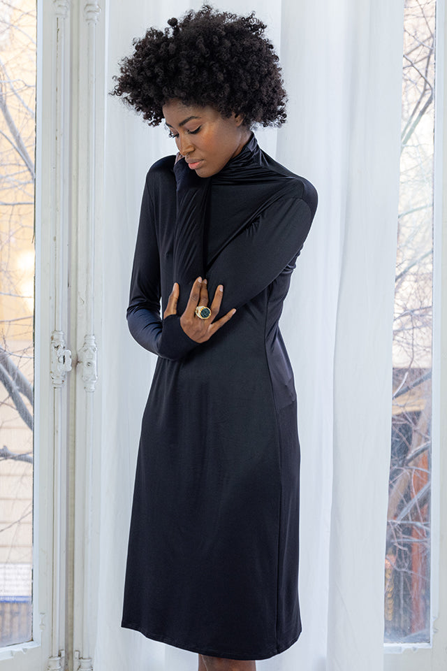 This dress brings together elegance, functionality, and a kind touch of comfort—perfect for the modern woman who values style and ease.