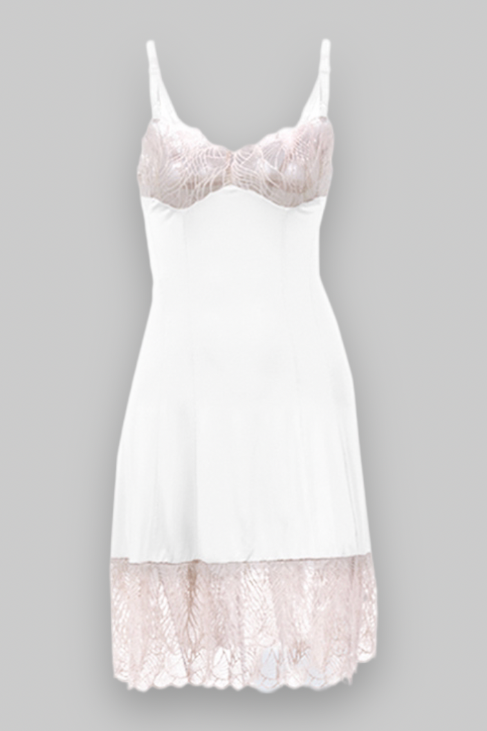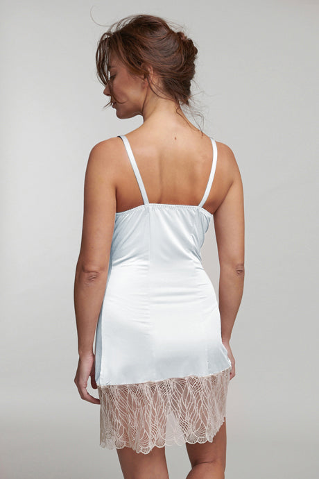 The Karin Lace Slip Dress is a short, feminine slip designed to be worn close.