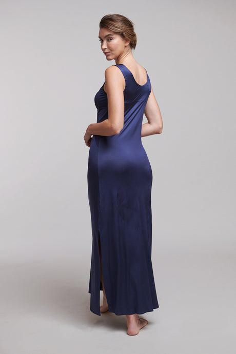 The Maxi has a slit up the left side. Fabric so luscious and soft it feels like a second skin.
