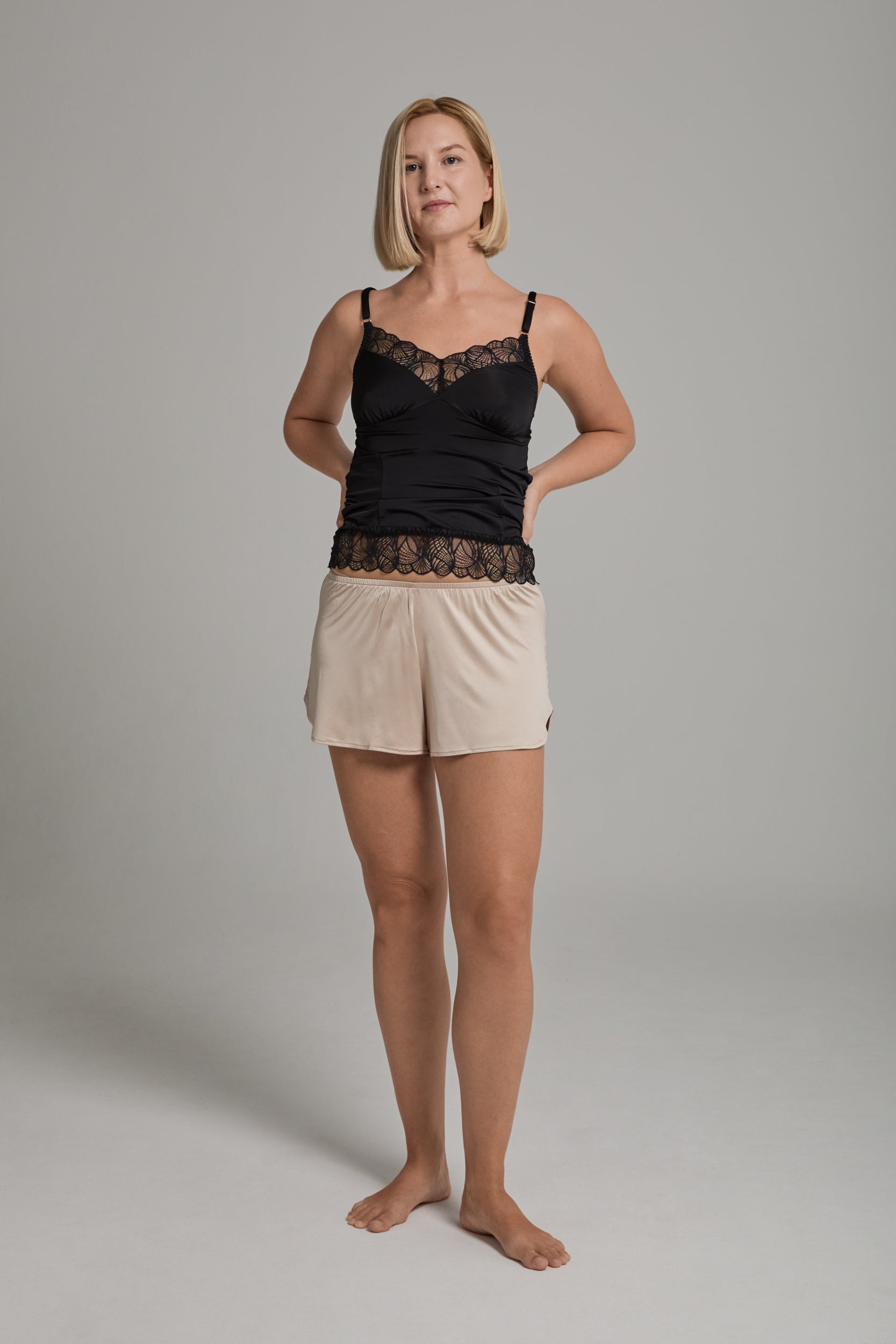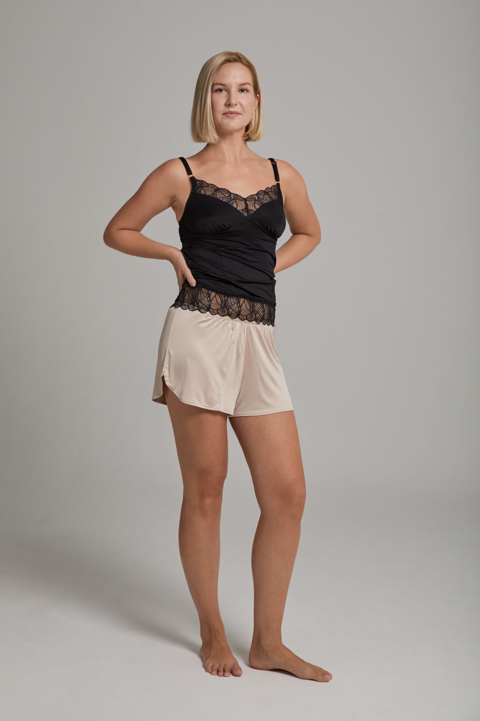 - Model wearing size XS_S paired with Frances white top Your first layer of comfort.