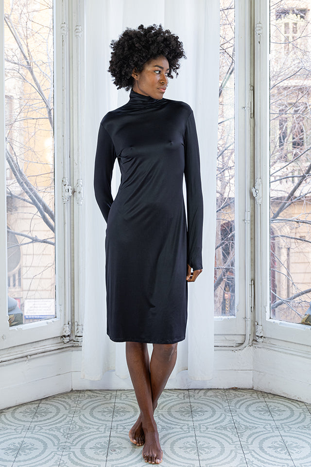 - Elegant Design: Features a turtleneck and long sleeves, offering a refined silhouette perfect for any setting.