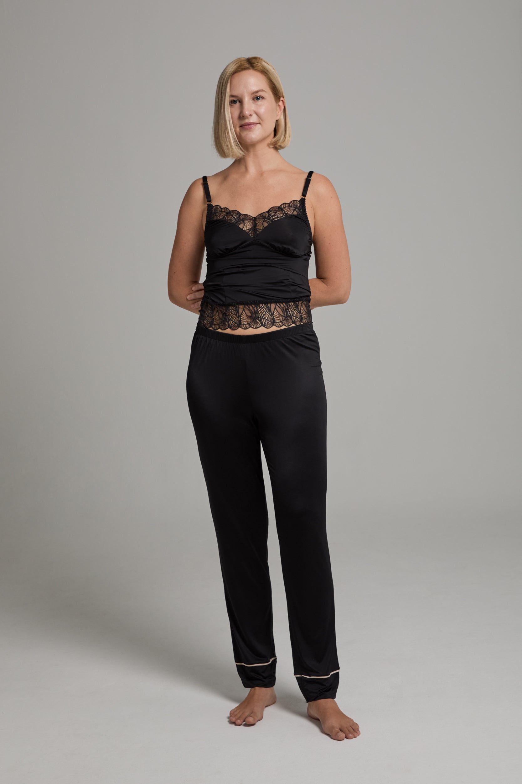 Pair them effortlessly with the Nina top for a luxurious ensemble perfect for lounging or sleeping.